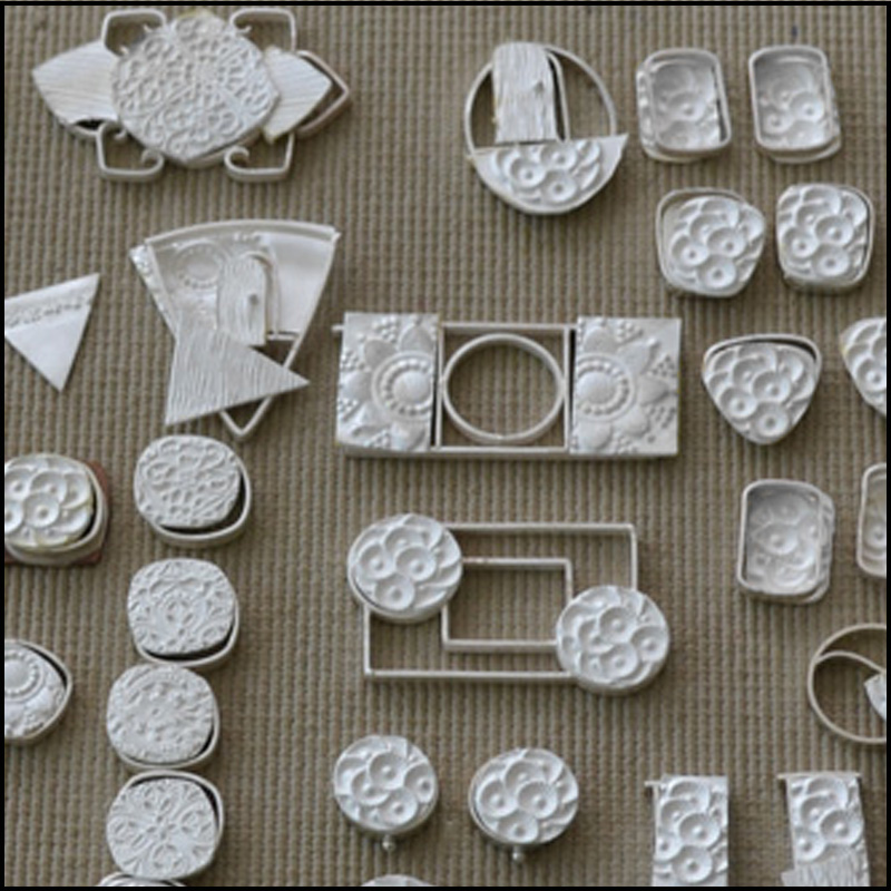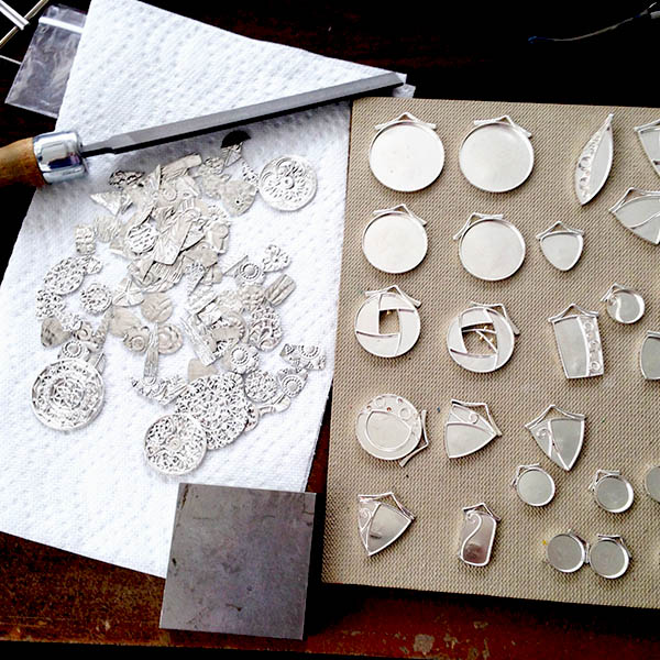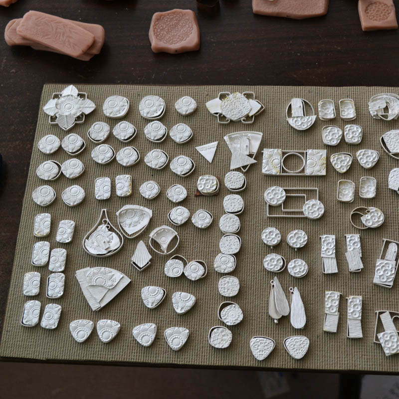 Each piece begins with a framework fabricated from sterling silver sheet and wire.