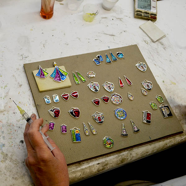 framework after they are kiln fired, oxidized and polished. Many of the patterns and